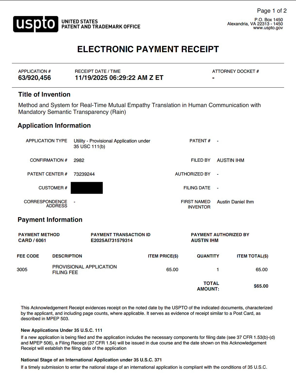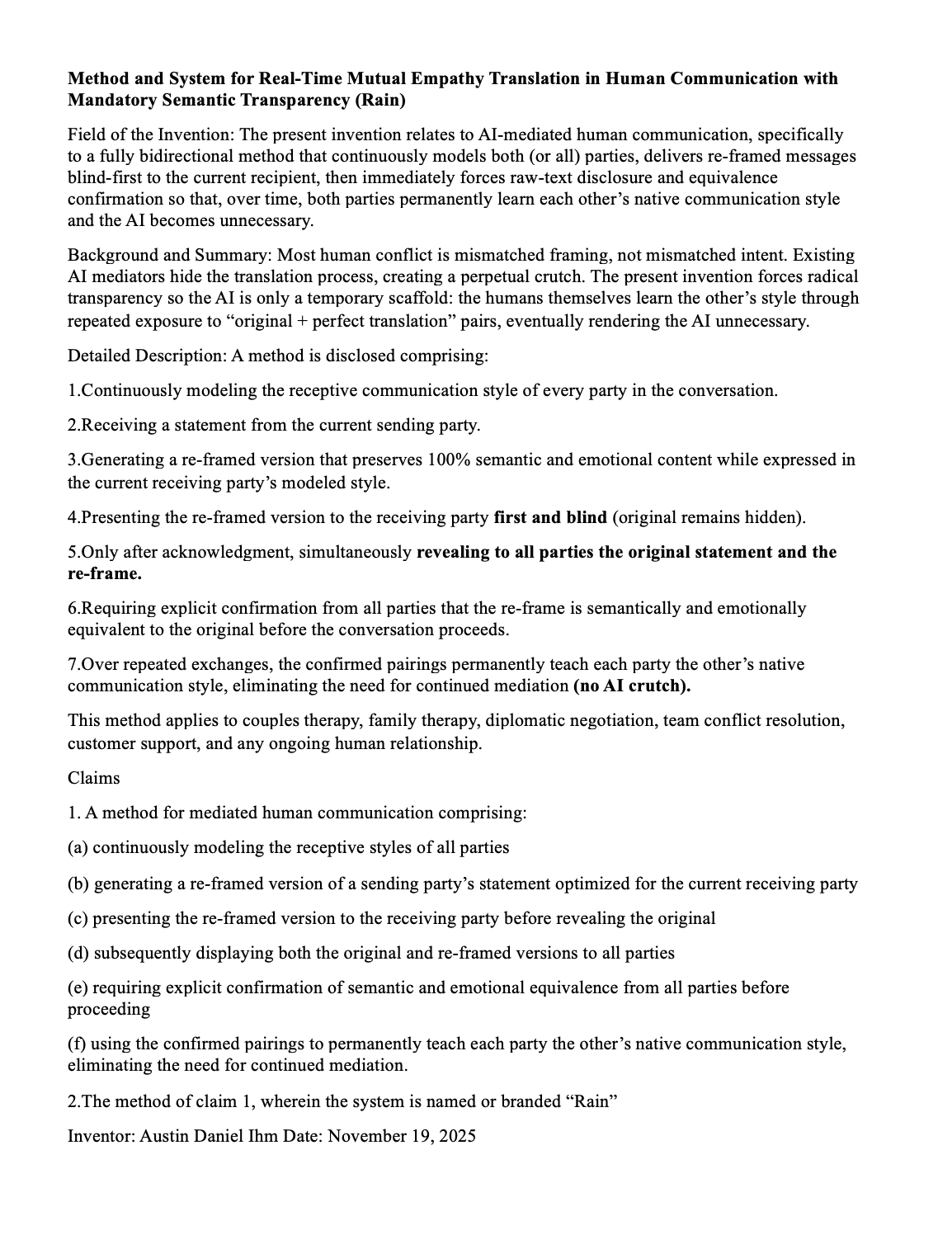 RAIN — AI-mediated communication system USPTO 63/920,456